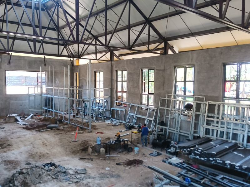 En planta alta, se integra un mezanine y una bodega adicional. En el exterior, se considera una zona de manejo exterior y una techumbre de servicio.