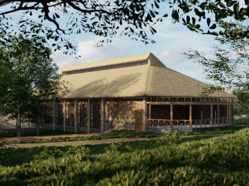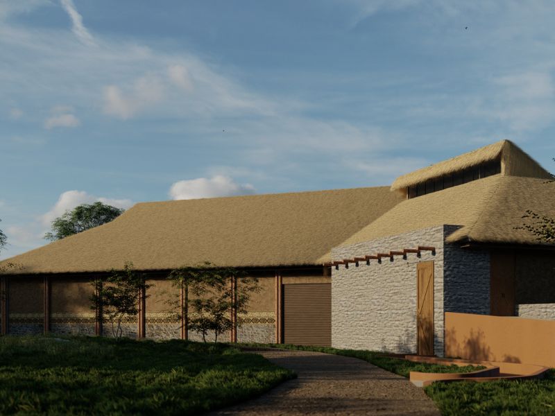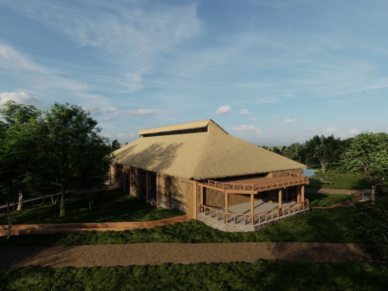 El proyecto contempla un área principal con seis zonas de manejo para jirafas, una bodega de alimentos y un edificio de cuidadores que incluye sanitario, dormitorio, bodega y cocina.